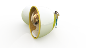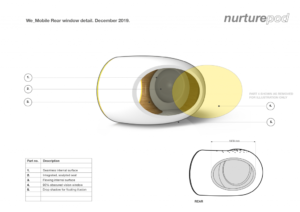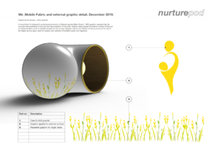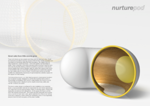 Barriers to infant feeding are still an issue, which can prevent parents from doing it in public. Travel with infants can be complex and tiring, for adults and children alike. Travel environments are seldom relaxing, space is often limited, heavily populated and incumbent on transience rather than brief occupancy. There is arguably a need for a space that supports nourishment. Not just a minimally suitable space but a space that supports this care relationship at times of stress. The NurturepodTM aims to provide a safe nurturing inclusive space for all, recognising the diversity existing in the act of infant nurturing for carers, wet nurses, as well as pre and post-op transmen parents – all and any familial and non-familial configuration involved in caring.
